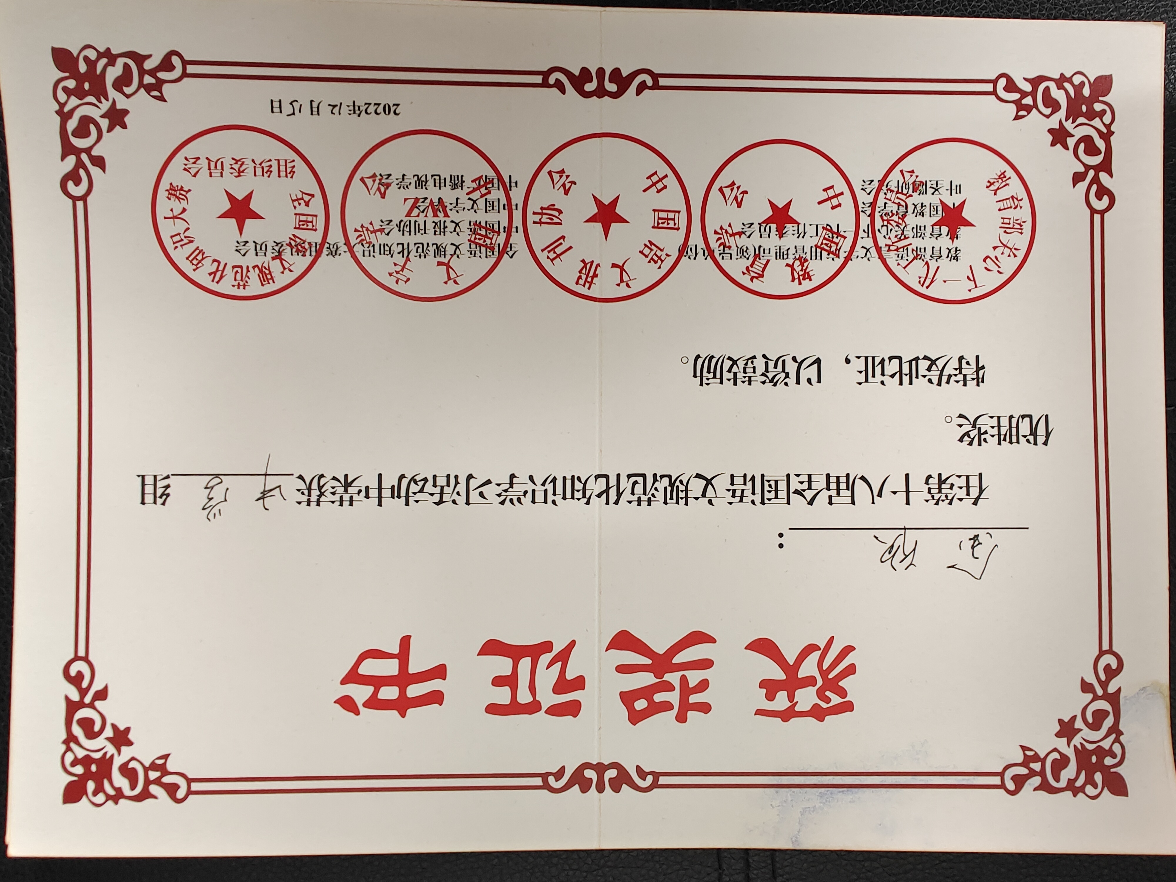 | 金欣获在第十八届全国语文规范化知识学习活动中荣获中学组优胜奖 |