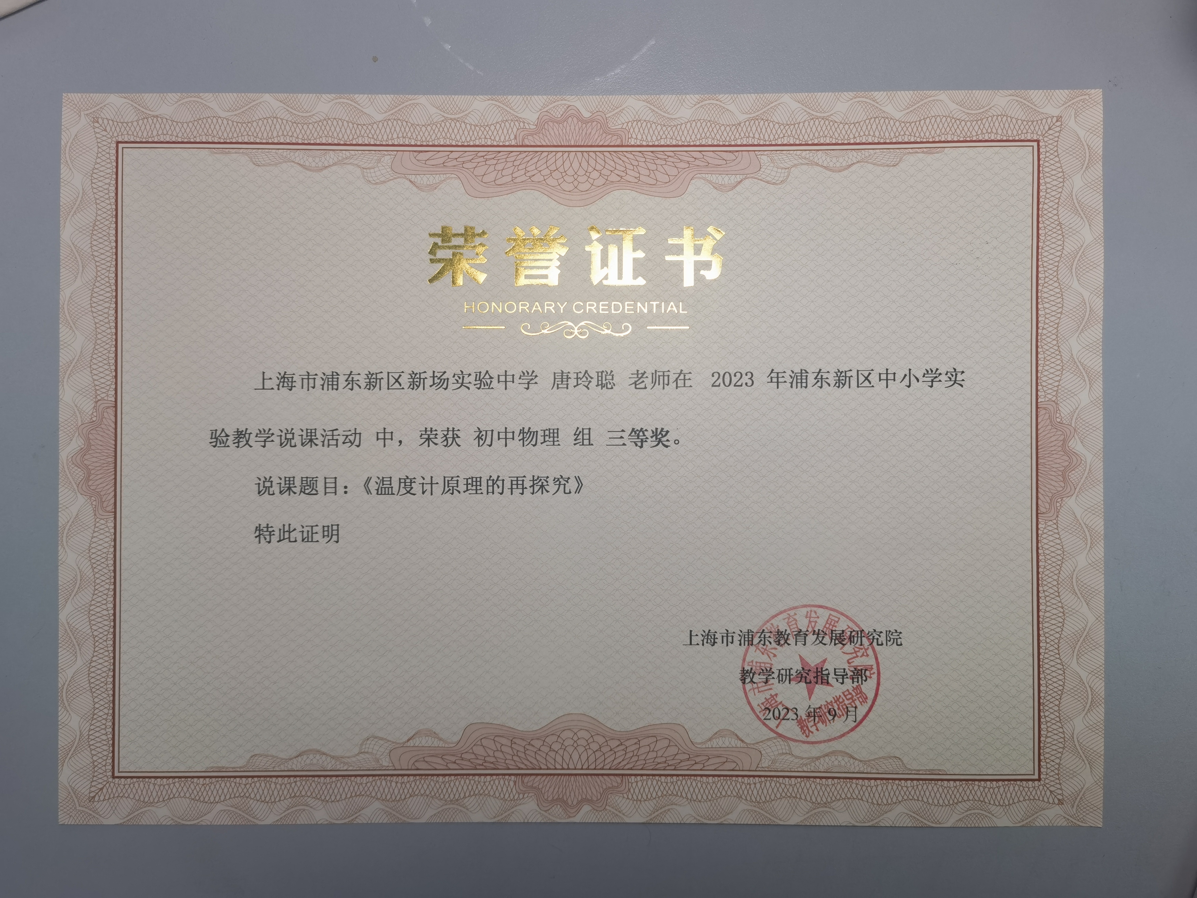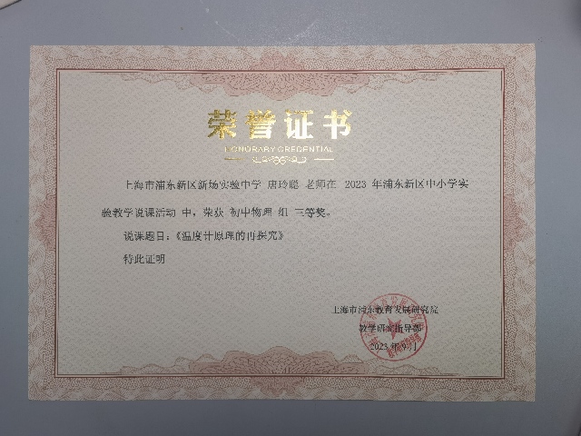 | 唐玲聪获浦东新区中小学实验教学说课活动三等奖 |