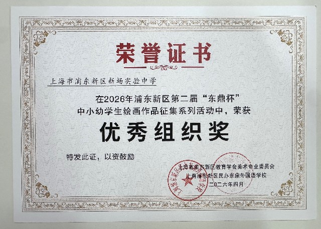 | 获2026年浦东新区第二届“东鼎杯”中小幼学生绘画作品征集系列活动优秀组织奖 |