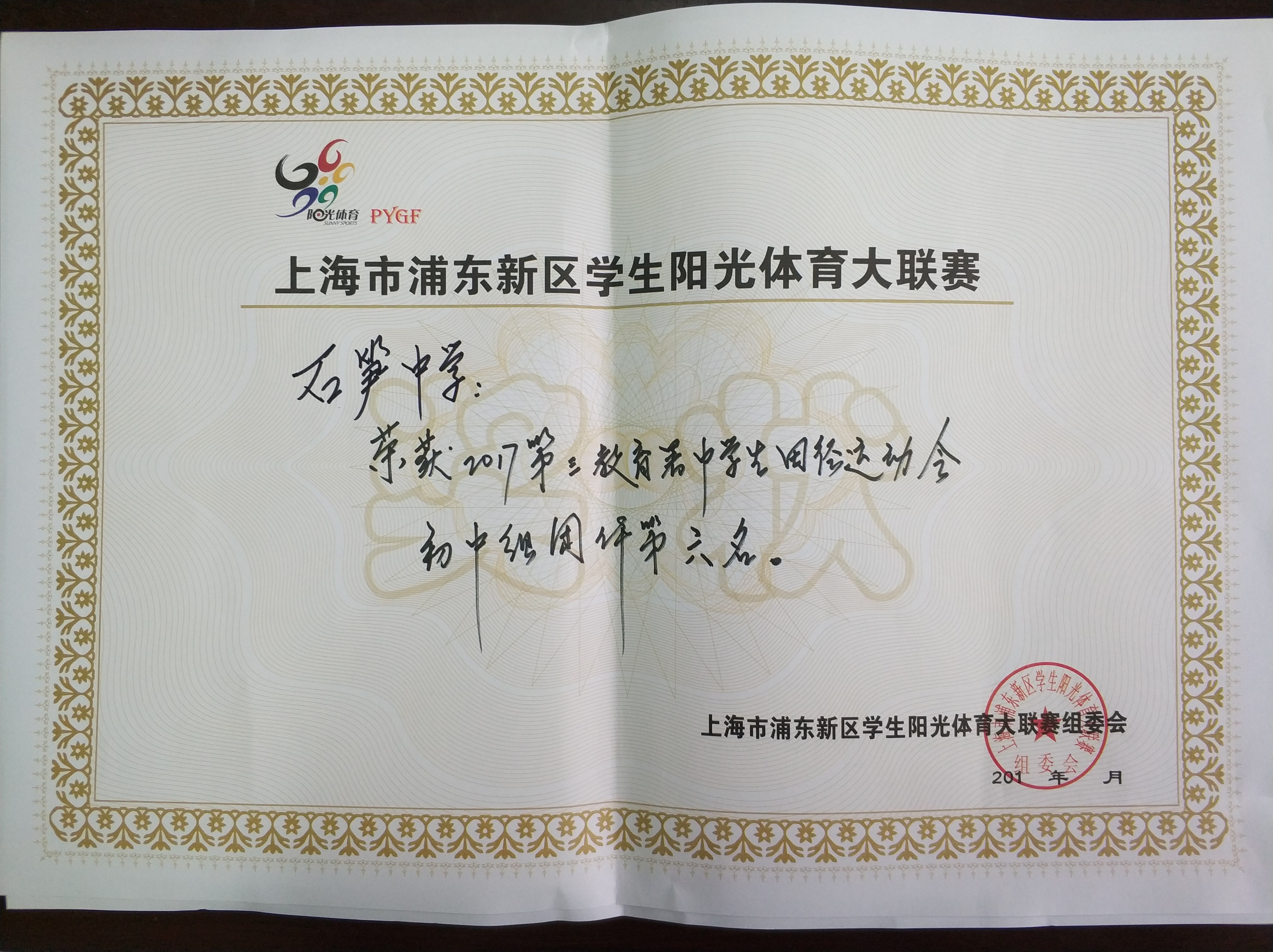 | 石笋中学获荣获2017第三教育署中学生田径运动会初中组团体第六名 |