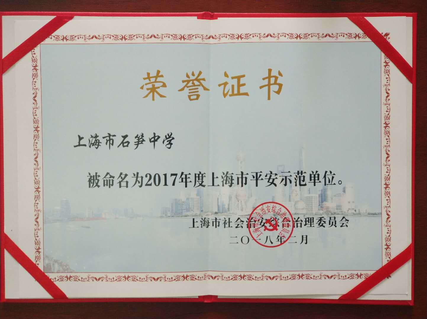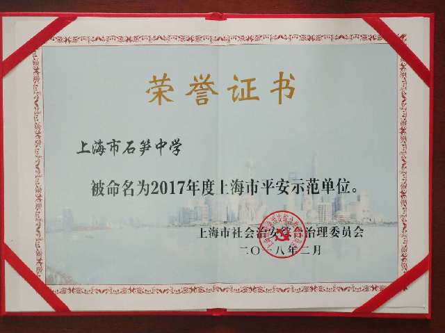 | 上海市石笋中学获被命名为2017年度上海市平安示范单位 |