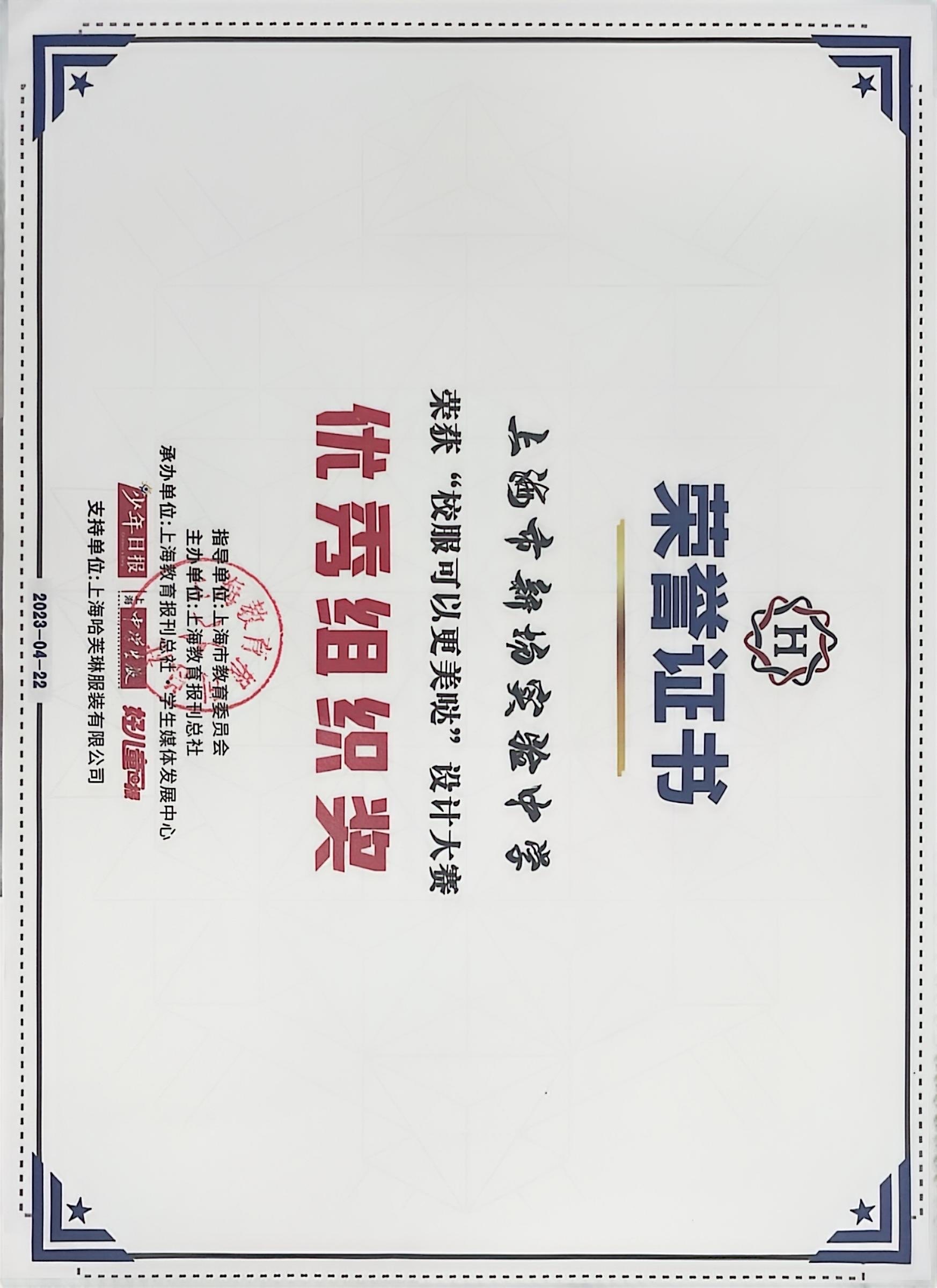 获“校服可以更美哒”设计大赛优秀组织奖