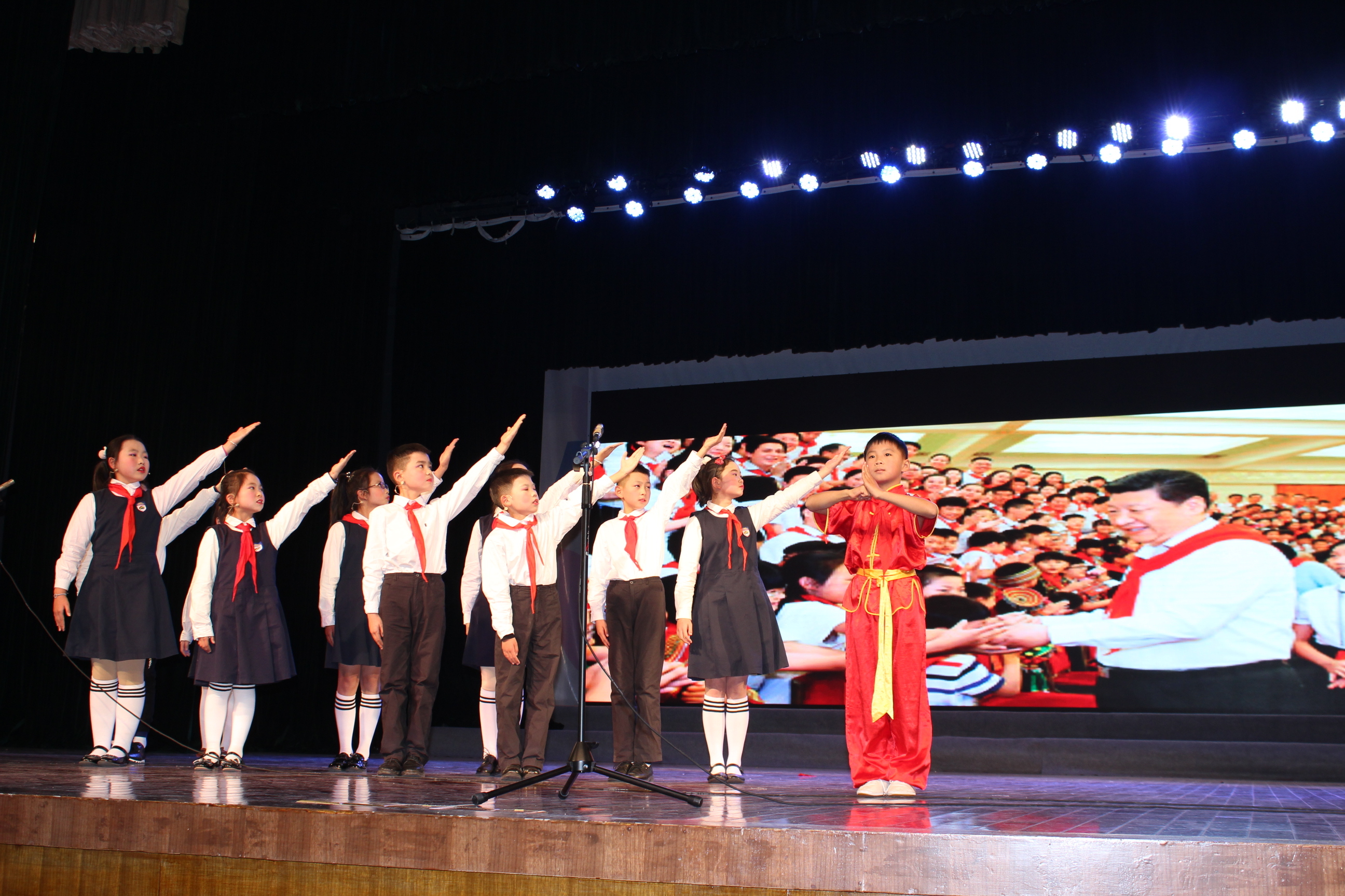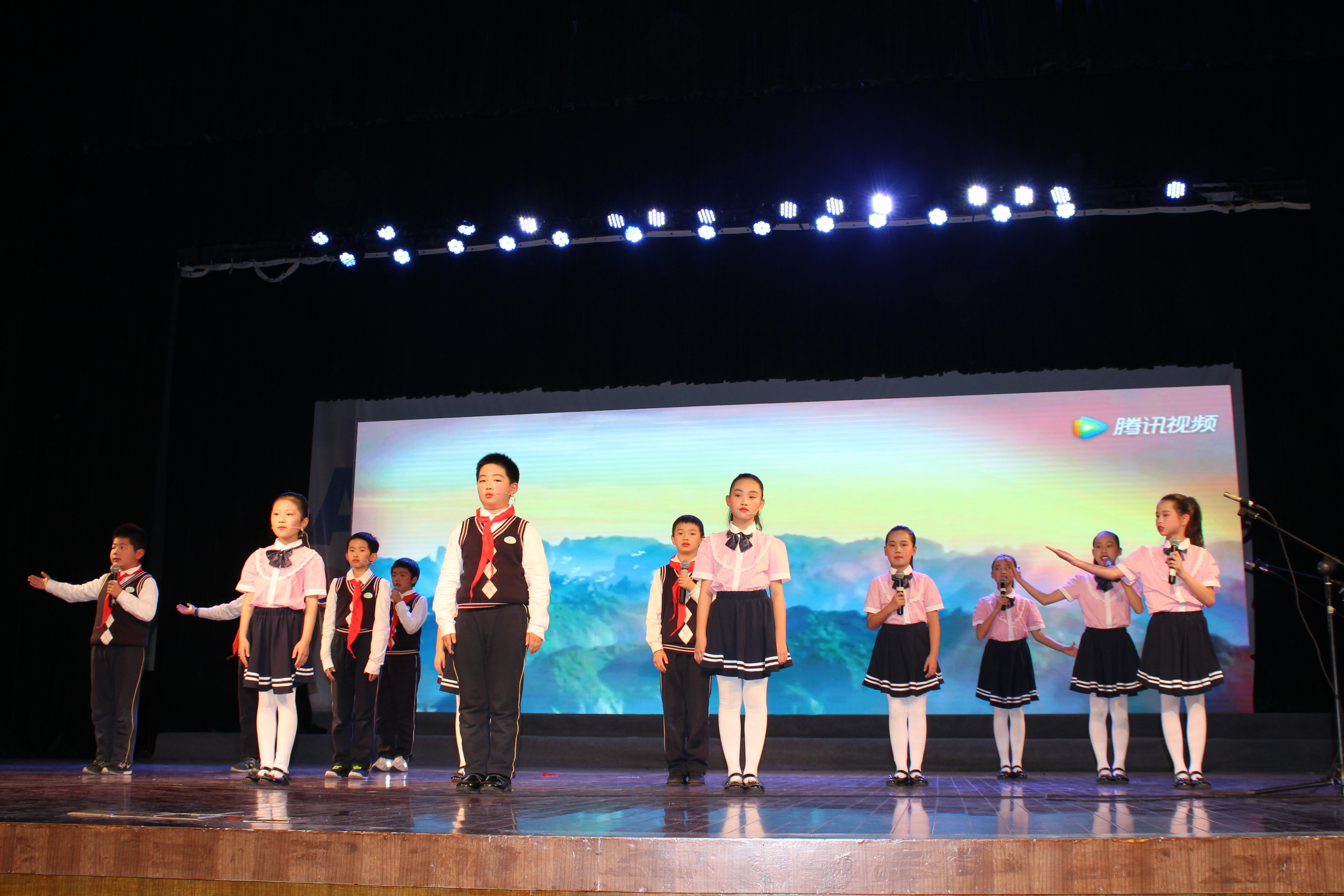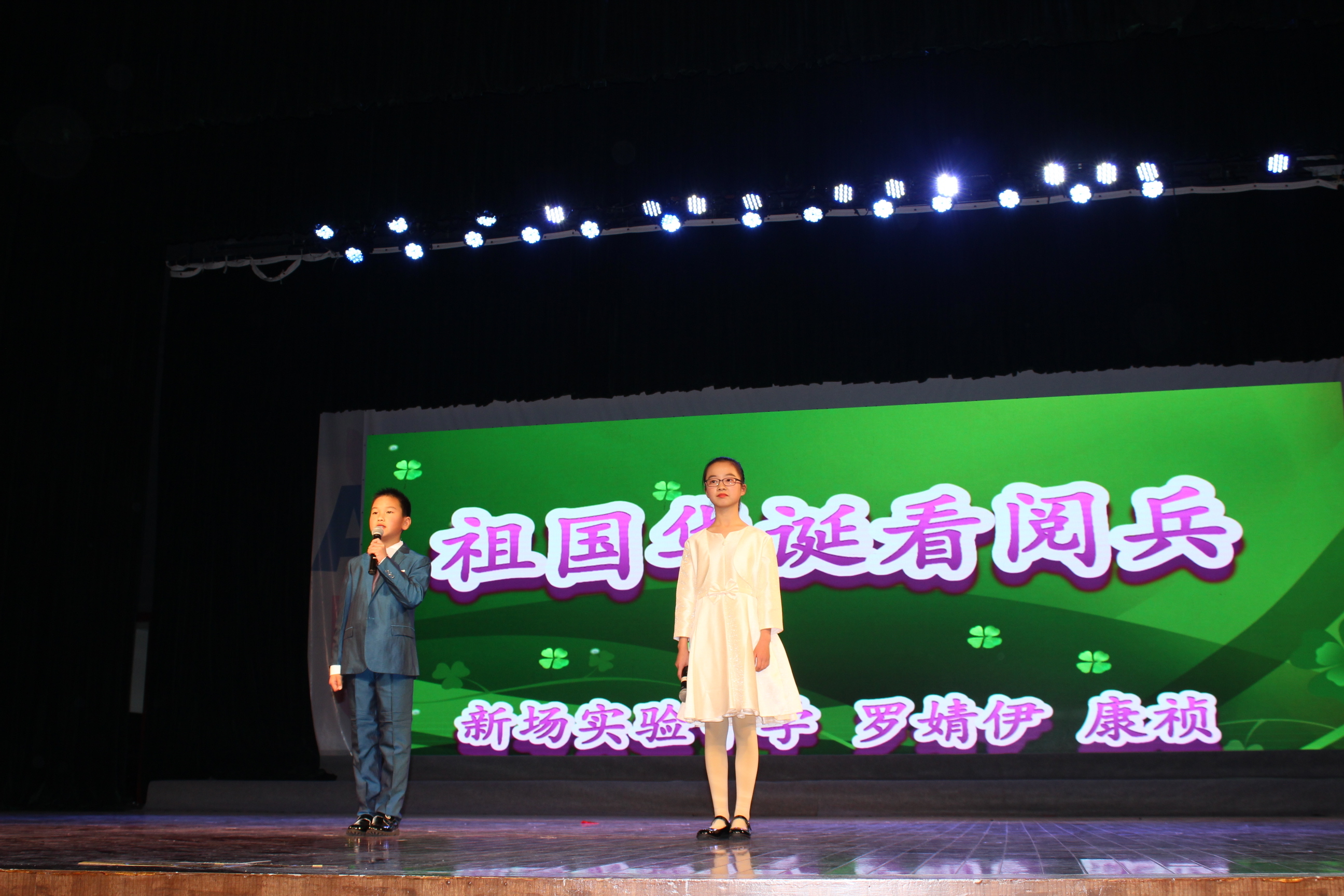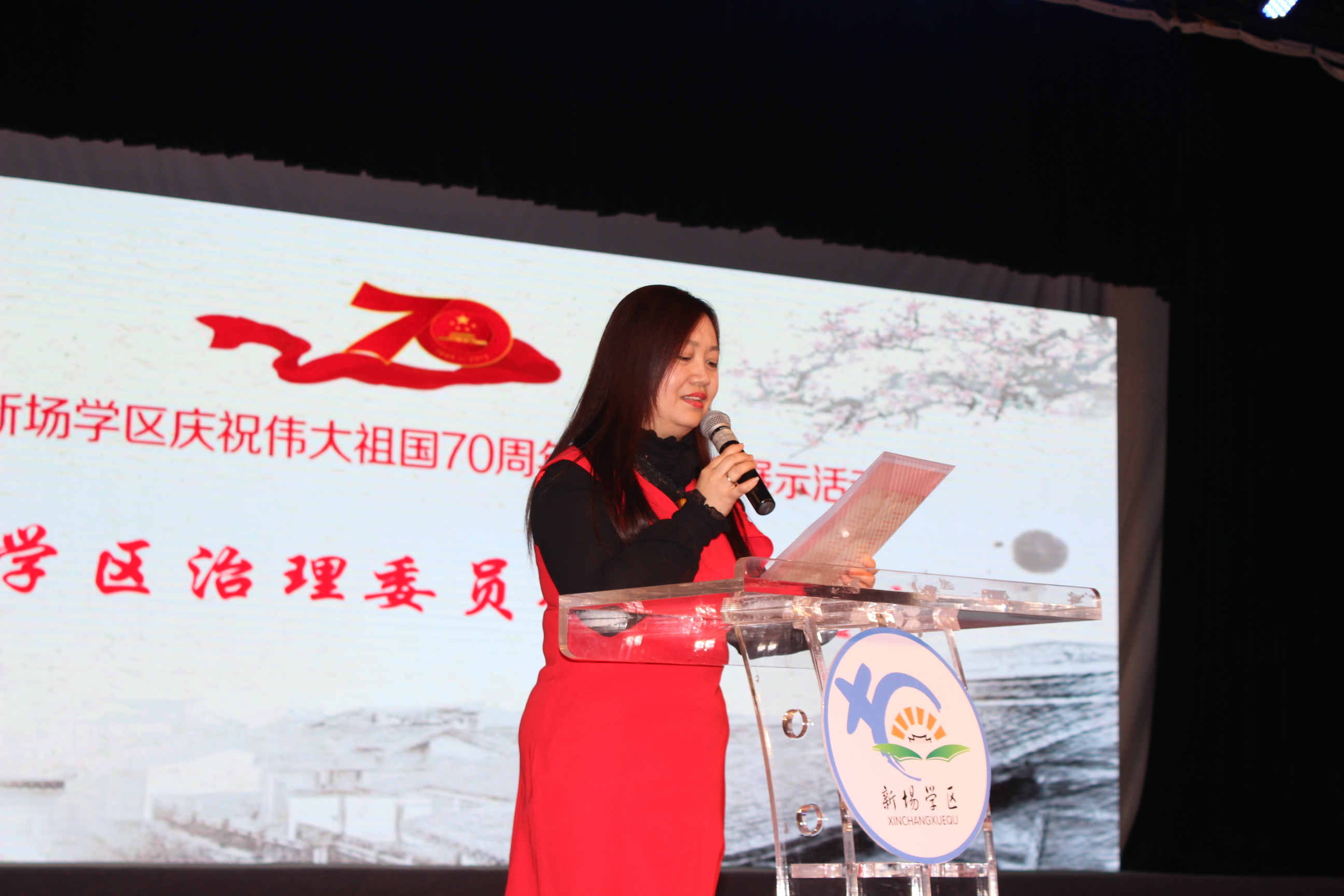 1:15分,活动在观看《规范管理谋发展,与时俱进创先行》 2019新场学区年度汇报专题片中拉开了序幕。1:30,“若为画家,我激情画出《我的祖国》;若为诗人,我如痴创作《歌颂祖国》”,三位主持人——坦直小学许丽老师、坦直小学吴语曼和苏博文两位小朋友的深情告白直击主题,直叩心灵,娓娓引出各成员校的师生们带来的十五个精彩诵读节目。诵读节目秉承歌颂伟大祖国的主旨,或高亢、或低沉、或豪情、或缠绵、情真意切,新场学区的师生以扎实的语言功底和声情并茂的表演,带来了一场饕餮的视听盛宴,声音的力量征服了所有来宾,大家享受其中,聆听爱国的心声、体味赤子的真情、让语言的魅力荡涤灵魂深处……