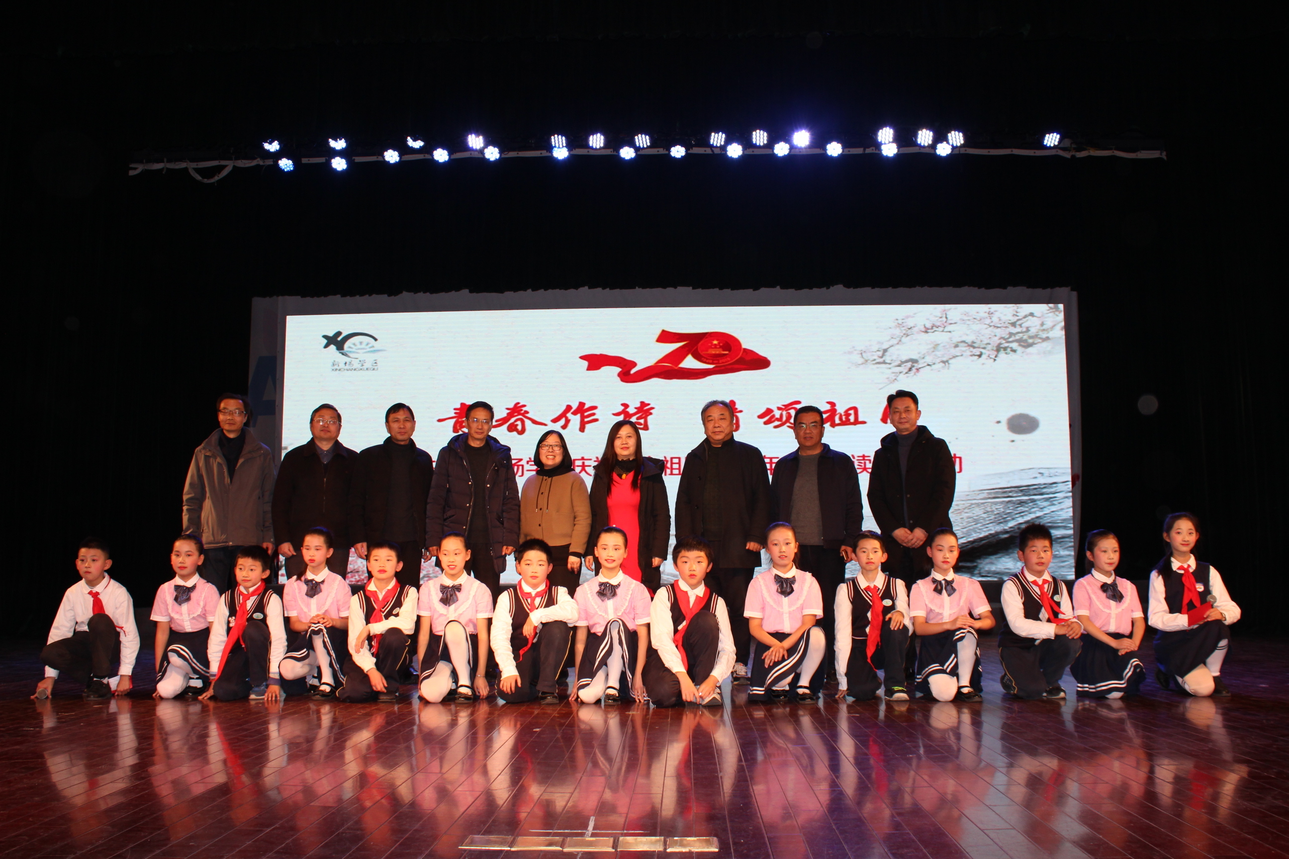 2019年12月27日下午,在伟大祖国成立70周年之际,浦东新区新场学区为了加强学区各成员校间的合作与交流,培养师生自觉传承弘扬中华优秀文化的意识,增强师生文化自信与爱国情感,构建和谐的育人氛围,打造紧密型学区的良好格局,特在新场文化中心隆重举行“青春作诗、情颂祖国”诵读展示活动。