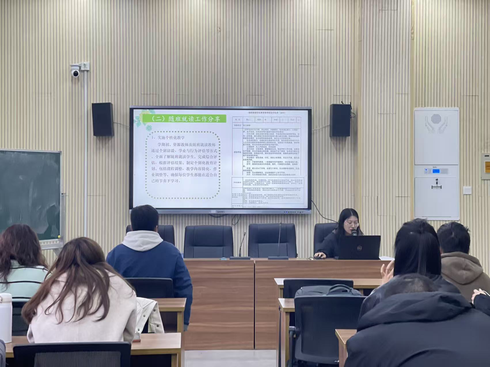 特教工作:体系与实施 乔老师首先介绍了学校特教工作的两大板块:随班就读与特教班工作。 随班就读是指特殊学生在普通班级中接受教育,并配备资源教师与资源教室,实现“融入而不被孤立”。乔老师详细说明了随班就读学生的申请流程、教育安置方式,并分享了我校在此方面的具体实践。 特教班则服务于需要更集中支持的学生,课程设置更具个性化。此外,学校还开展送教上门服务,为无法到校的学生提供教育保障,真正做到“一个都不能少”。 为什么特教如此重要? 乔老师从社会与学校两个层面,深刻阐述了特教工作的深远价值。 社会层面:特教关乎人权保障与社会公平,是实现教育现代化的关键一环。面对我国庞大的残疾儿童数量,保障他们的受教育权与未来发展,是社会文明进步的坚实底座。 学校层面:特教不仅关乎学生个体,点亮每个特殊需要的孩子,它同样锤炼着教师的专业能力,塑造着包容友爱的班级文化,并最终在真诚的家校沟通中,赢得信任,形成教育合力。 “正是这些宏观且深远的意义,最终都沉淀于我们与学生相处的每一个微观日常里。特教的价值,在理论中建构,更在每一个具体孩子的成长故事中被真切地看见。” 案例分享:理论照进现实,见证成长的可能 当特教的理念从宏观框架走向具体的学生,它的价值才真正被看见。乔老师和杨冬英老师分享的案例,正是理论照进现实的温暖光芒。 案例背后,是共通的教育智慧: 无论是杨冬英老师带来的自闭症学生个案,还是乔金津老师分享的智力障碍学生成长故事,我们都能看到相似的支持路径: 1.精准的个体评估:抛开统一的标尺,真正去读懂孩子的独特行为、优势与挑战。 2.灵活的策略转换:将学生的特殊兴趣(如对数字、固定流程的执着)转化为建立规则、融入集体的沟通工具。 3.成功的系统支持:通过营造包容的班级氛围、争取家长的理解配合,为孩子的成长构建一个稳定而友好的支持系统。 这些案例生动地告诉我们:特教工作并非遥不可及的专业术语,它体现在为一名学生量身定制的视觉日程表里,闪烁在当他完成“班级绿植守护官”任务时自豪的眼神里,更融汇在班级同学从不解到接纳、再到主动提供帮助的每一个瞬间里。 而这些成功的支持策略,最终都指向同一个核心——如何为特殊学生提供真正“有效”的关怀。这不仅是技巧,更是一种心态的建立。 如何进行“有效关怀”? 乔老师提出,对特殊学生的关怀应贯穿四个方面: 1. 心理关怀:关注行为背后的真实需求; 2. 生活关怀:争取家长支持,形成合力; 3. 社会关怀:发挥班集体的融合作用; 4. 学习关怀:设定适合学生的目标,不盲目比较。 她还分享了ABCDE沟通法则,帮助教师调整心态,学会欣赏每一个孩子的独特性: Accept(接纳)、Believe(信任)、 Care(关怀)、 Devote(投入)、 Enjoy(欣赏) 静待花开,也拥抱大树 培训尾声,乔老师以一段诗意的话语作结: “每个孩子都是一颗花的种子,只不过每个人的花期不同。细心地呵护,慢慢陪伴他沐浴阳光风雨,是一种幸福。也许你的种子永远不会开花——因为他是一棵参天大树。” 结语 本次培训不仅让见习教师对特教工作有了系统认识,更在心灵深处种下“用爱施教”的种子。在新场实验中学,我们相信教育是点亮生命的过程,而特教,正是那束温柔而坚定的光。 教师感悟 本次特殊教育讲座,让我对随班就读与特殊儿童支持有了全新认知:原来特殊教育不仅是“义务”,更是人权与温度的体现。 从前我对特殊儿童的关注仅停留在“照顾”,如今明白要精准对接需求——从资源教室的配置、医学诊断的流程,到个别化教学方案,每个环节都需要专业与耐心。印象最深的是“残疾儿童问题与对策”板块,这让我意识到:特殊教育不是“降低要求”,而是“适配支持”,比如ADHD儿童需要的是注意力引导而非批评。 作为新教师,我深知未来要多观察、勤学习,在随班就读中兼顾集体与个体,用细节为特殊儿童筑好成长的台阶。这份责任,是教育者的温柔必修课。 新场实验中学 康琎源 在参加本次以“用爱施教,助力特殊学生成长”为主题的培训后,我深受启发,对特殊教育有了更加系统和深入的理解,也让我对今后如何更好地开展特教工作有了更明确的方向。 特殊学生群体具有多样化的特点,每一位孩子都需要我们用心去理解和接纳。例如,自闭症学生在社交和互动方面存在障碍,作为教师,我们应当以平静温和的语气与他们交流,保持耐心,尊重他们的个人空间;对于智力障碍儿童,我们要帮助他们树立“自我意识”,善于发现并挖掘他们身上的闪光点,逐步培养其自制力和人际交往能力;而对于ADHD学生,则需要从医学干预、行为管理、注意力训练等多方面入手,全面提升他们的安全意识与学习能力。 我深刻体会到,特教工作的核心在于个性化教学。每个孩子都是独一无二的,他们的学习方式和需求也各不相同。因此,我们必须根据每个学生的实际情况,制定有针对性的教学计划,真正做到因材施教。同时,我也意识到,特殊教育的成功离不开家庭的积极参与和支持。家校共育是推动学生成长的重要保障。 融合教育的理念让我更加坚定了教育的初心和使命——不是让所有孩子变得相同,而是让每一个孩子都能在平等和包容的环境中,成长为更好的自己。作为新教师,我将用爱心、耐心和专业知识,陪伴每一位学生慢慢成长,静待