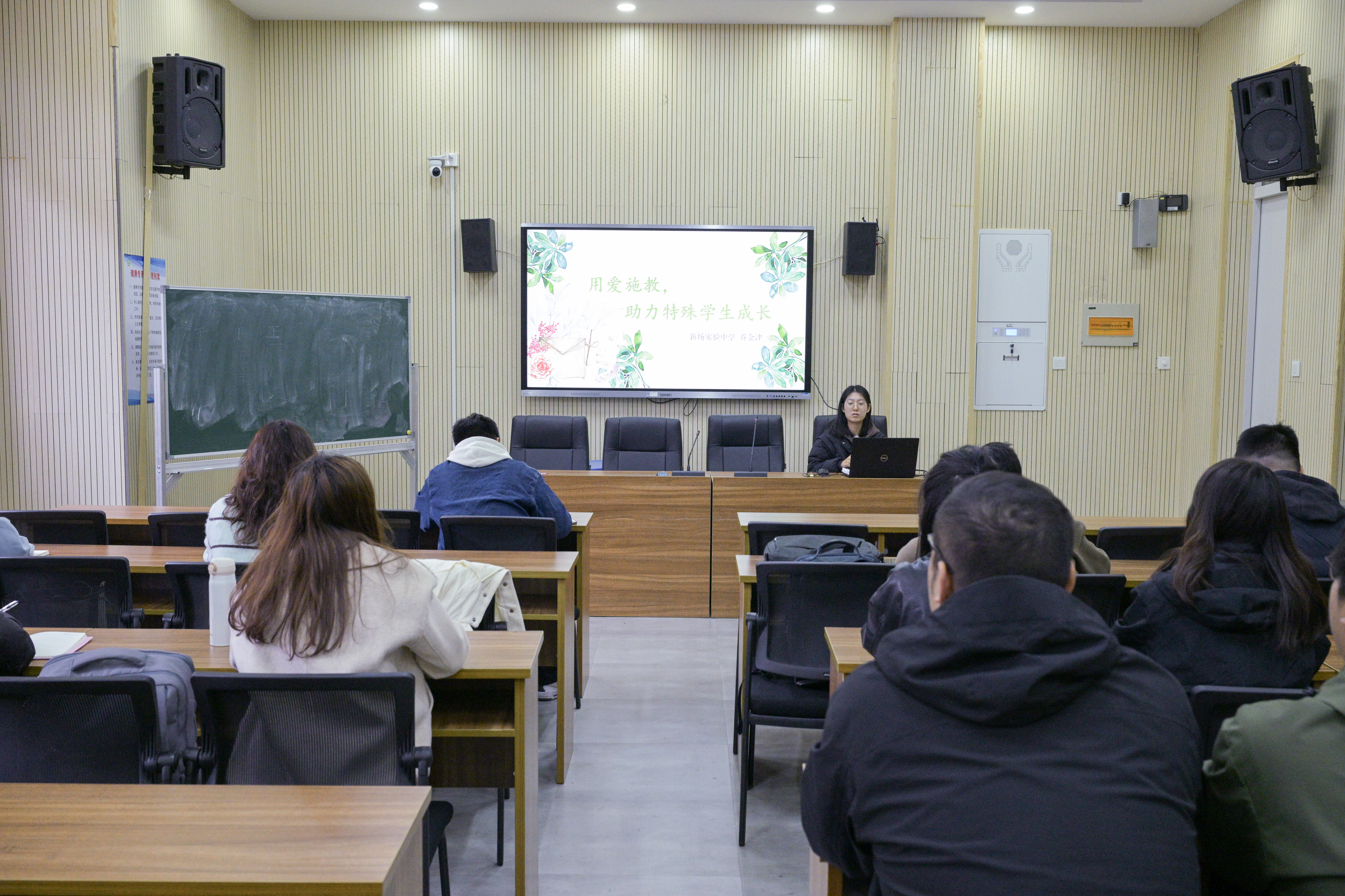 践行融合教育 点亮特别生命 2025学年见习教师规范化培训专题培训(五) 每个孩子都是一颗花的种子,有的花开在春天,有的树长在四季。特殊教育,正是用爱与专业静待花开的艺术。2025年11月24日,新场实验中学乔金津老师为见习教师开展了一场以《用爱施教,助力特殊学生成长》为主题的培训,从特教工作实践到育人理念,层层深入,为青年教师带来启发与思考。